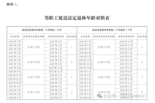 第一條?從2025年1月1日起,男職工和原法定退休年齡為五十五周歲的女職工,法定退休年齡每四個月延遲一個月,分別逐步延遲至六十三周歲和五十八周歲;原法定退休年齡為五十周歲的女職工,法定退休年齡每二個月延遲一個月,逐步延遲至五十五周歲。國家另有規定的,從其規定。